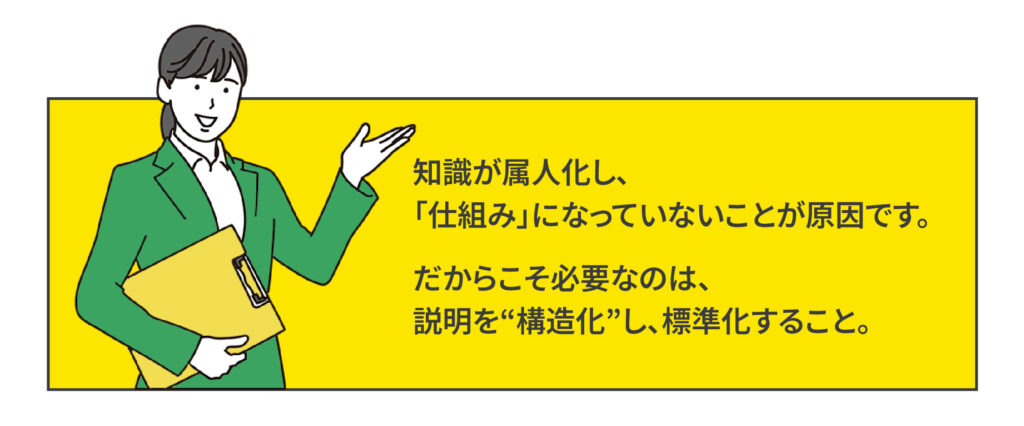 専門知識が属人化するのは、説明の順番や前提、要点が整理されていないからです。